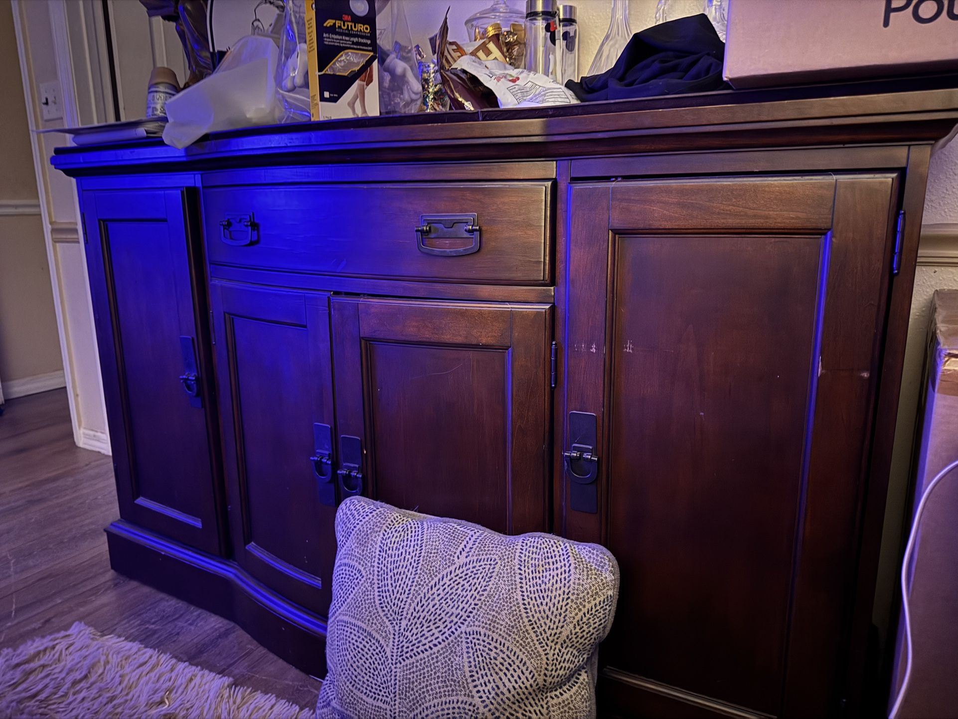 Beautiful Dark Wood Buffet Table with storage and adjustable shelving