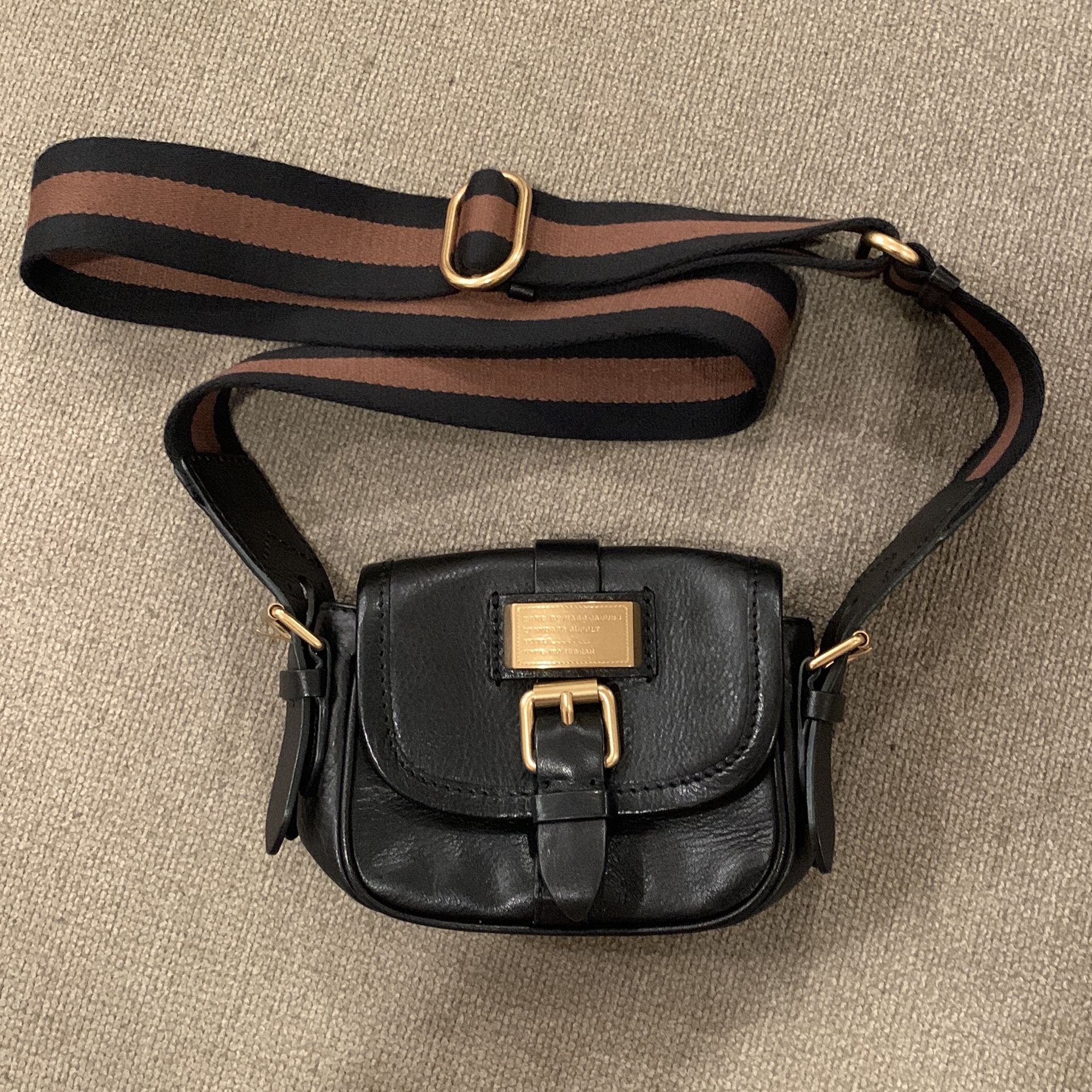 Excellent condition. Black genuine top quality leather. Brown and black thick adjustable strap.