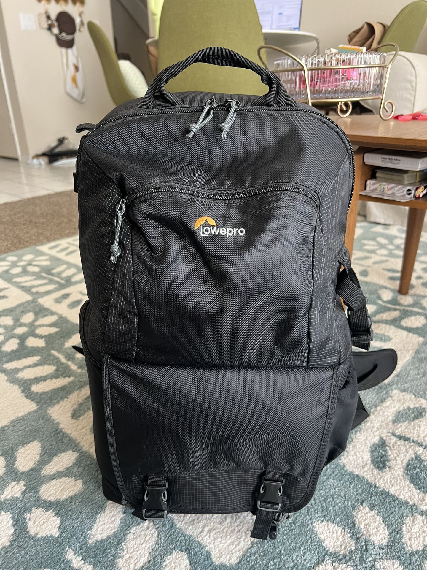 Like new, only used once or twice Lots of compartments 15 inch laptop sleeve pocket Rain cover included
