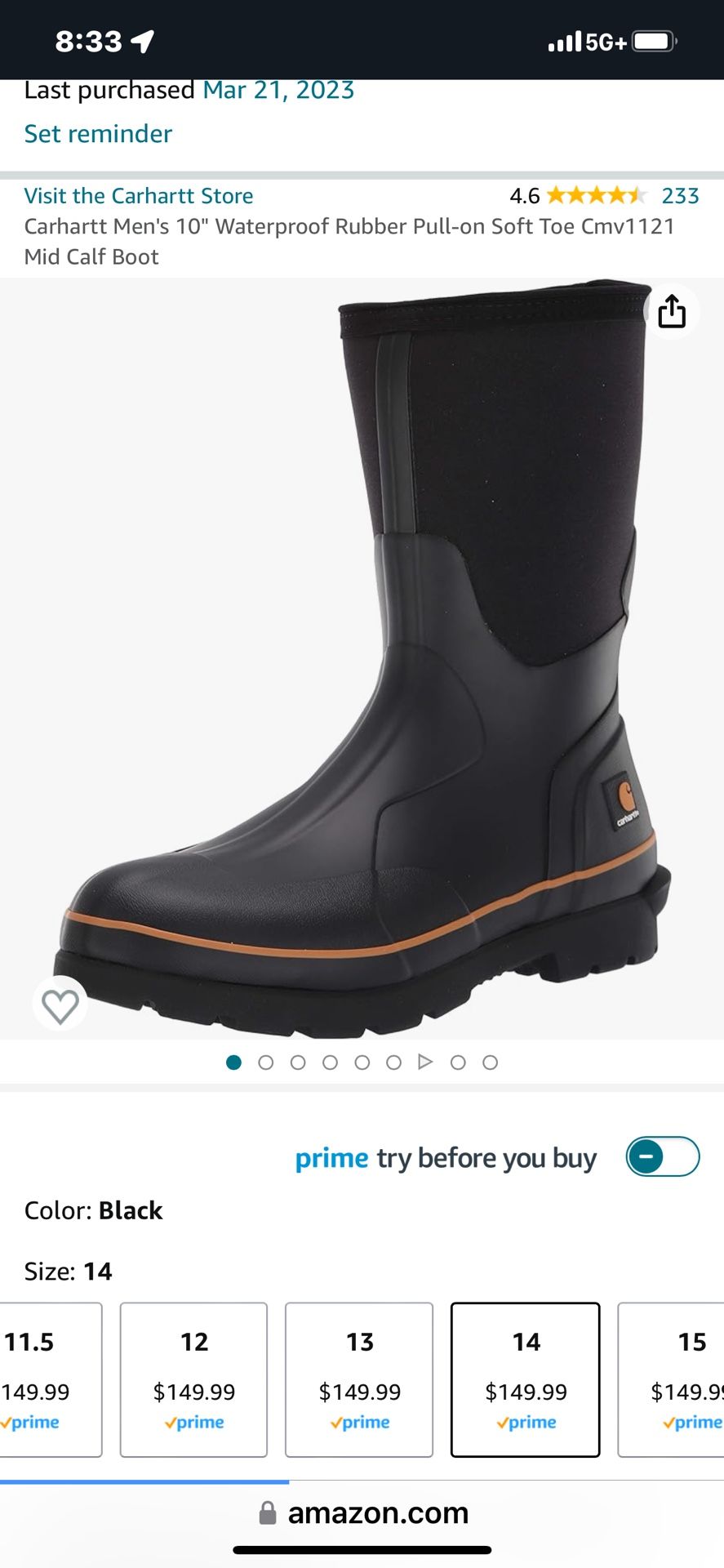Men, Carhartt, Rain Boots Size 14 have never been used. Great condition they were just not my son style.