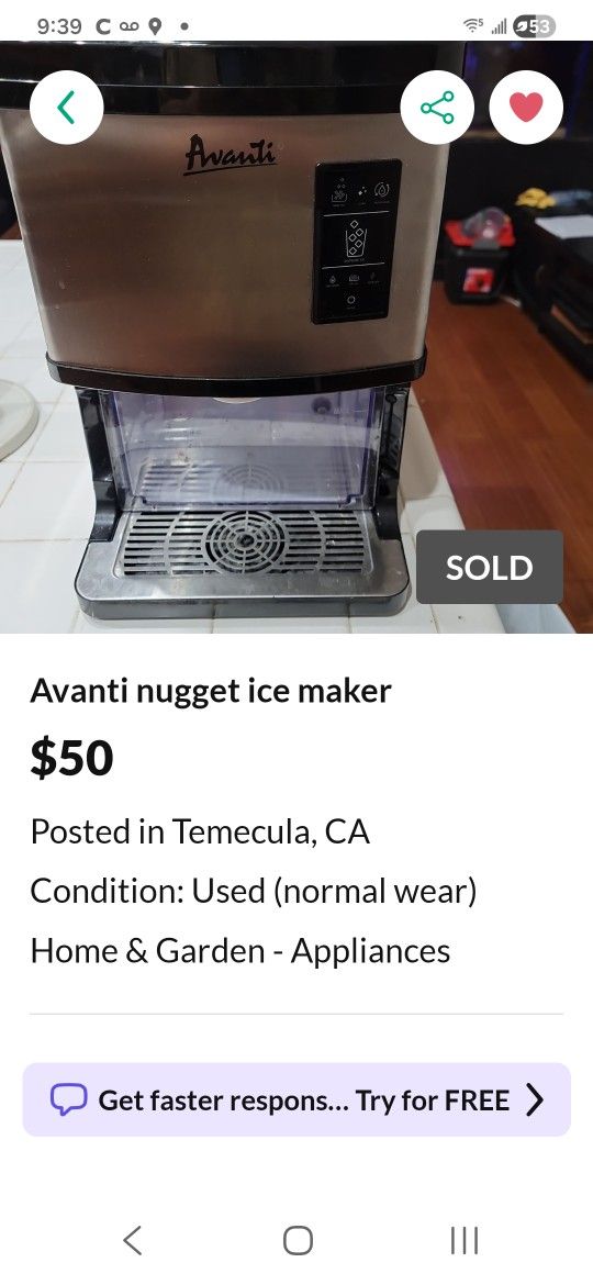 Avanti ice maker,bought this from a guy here on offer up Beng I think it is . Anyways it's not what I expected I bought it for $50 am willing to take anything reasonable as I didn't want to just throw my money away. It does make ice not as much or as fast as I'd expect . Seller was of no help taking back his item