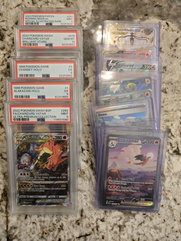 All prices from tcgplayer all cards nm besides tag teams tagteams lp I am willing to trade looking for paldean fates mew ex sir and surging sparks pickachu ex sir and paldea evolved magikarp ir