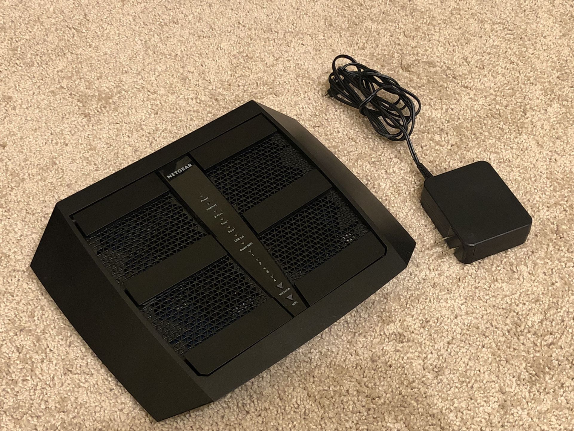 Selling for a friend who has upgraded his WiFi router. This router is in like new condition except for some scratches from storage. Works great! AC3600 Tri-band Wireless Speed (up to 3600 Mbps). Up to 3,500 sq ft Coverage & 55 Devices. 4 x 1G Ethernet ports and 1 USB port.