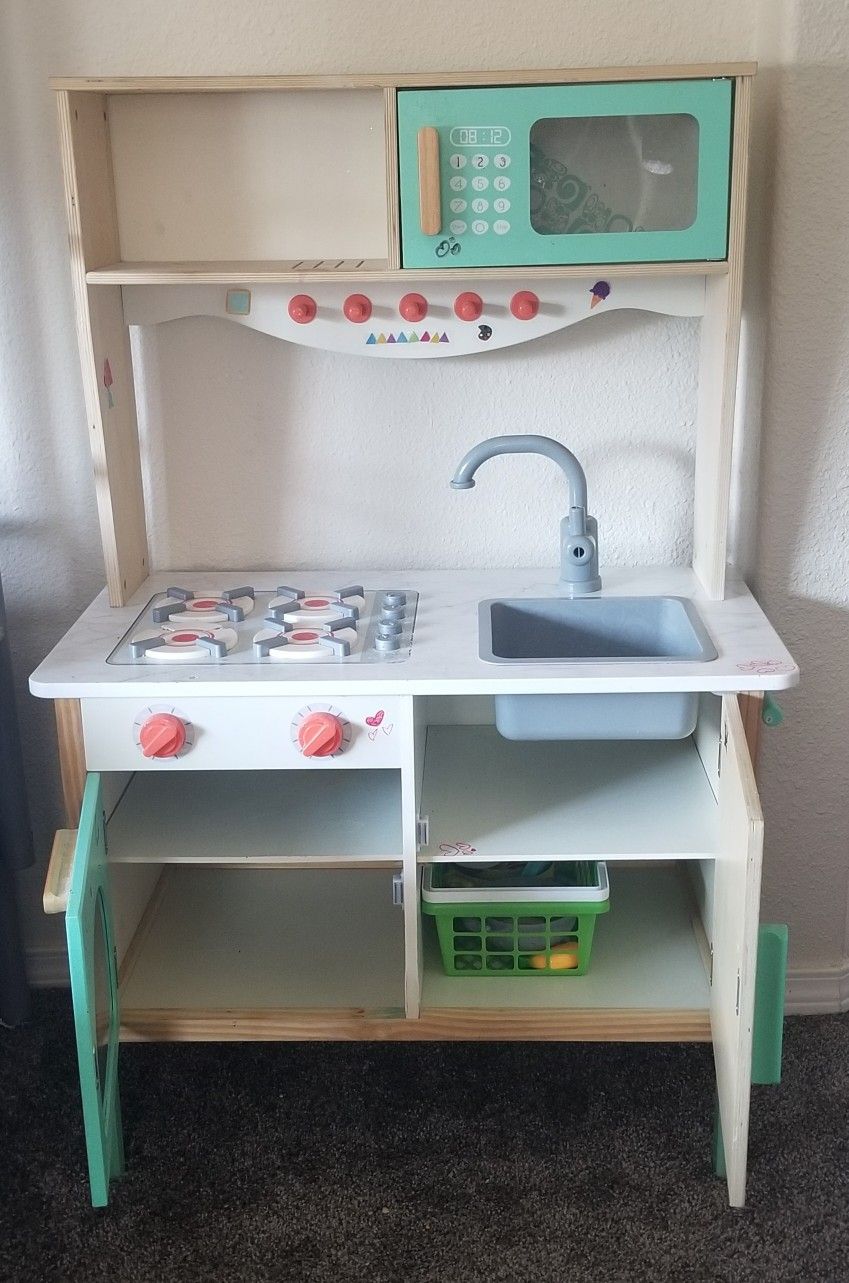 Fun Kitchenette for great cooking! Clean and in good condition, comes with several food items and a shopping basket to start. Great for your little cook!
