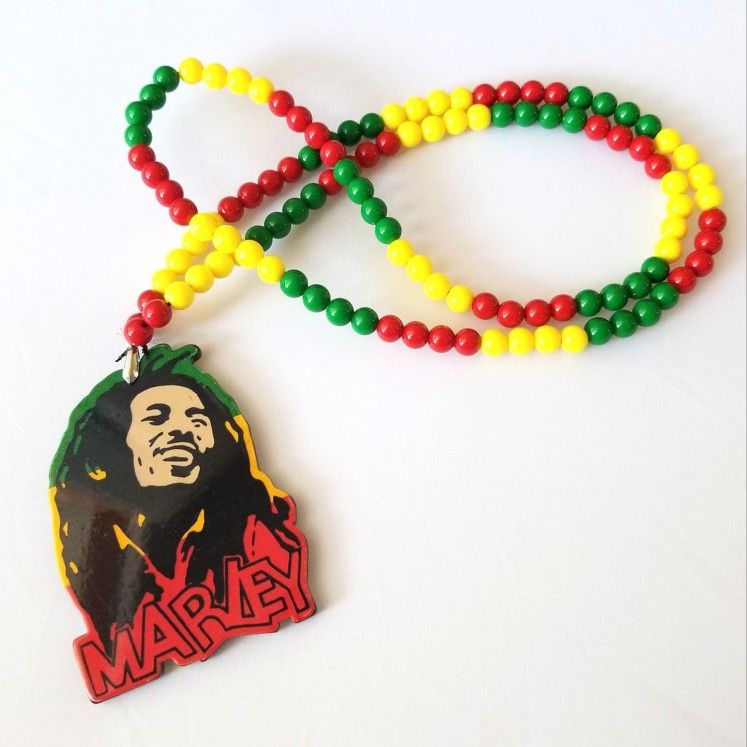 Rasta jamaican colored beaded necklace with Bob Marley pendant