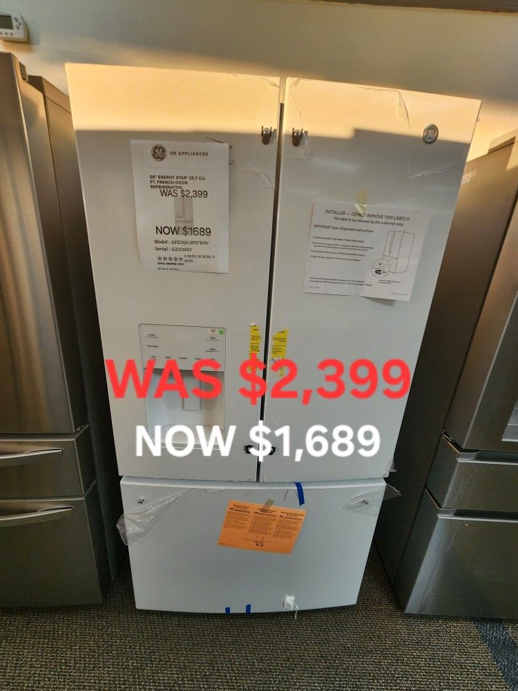 MODEL: GFE26JGMYFWW Dimensions: H 69, W 35, D 33 💯We offer a wide selection of discounted refrigerators, cooking appliances, dishwashers, washers, dryers, and more. Our inventory is loaded with new, never been use and slightly scratched or dented appliances . 🚛 Same day pick up Or Delivery available. 📝 1 year Warranty 🏛 We offer financing, 0 down no interest charge 💯Ofrecemos una amplia selección de refrigeradores, electrodomésticos de cocina, lavavajillas, lavadoras, secadoras y más con descuento. Nuestro inventario está repleto de nuevo. Nunca se han usado y están ligeramente rayados o abollados. 🚛 Recogida o entrega el mismo día disponible. 📝 1 año de garantía de CPS terceros 🏛 Ofrecemos financiamiento 0 abajo. Sin cargo de intereses Appliances 4 Less 📍10822SE 82nd Ave Happy Valley , OR 97086 ☎️971-335-7505