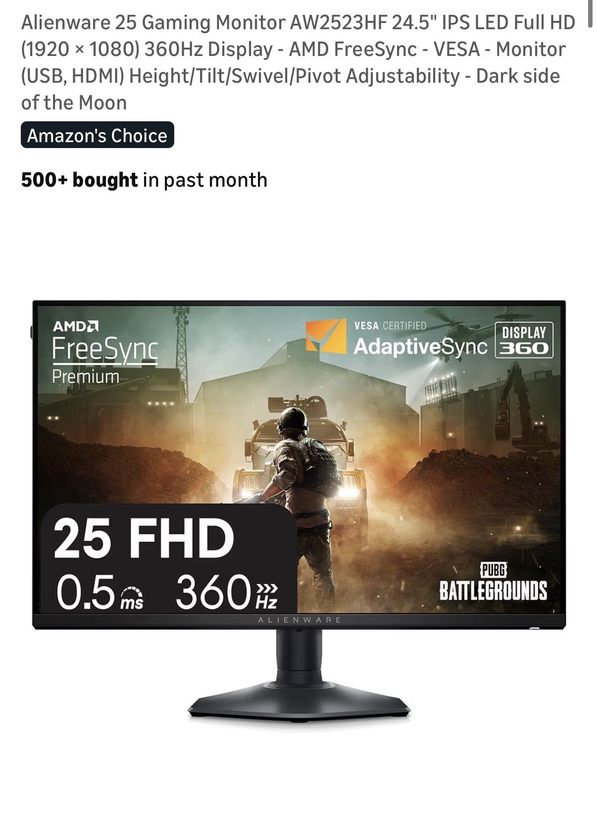 Alienware 1080p 360hz Monitor