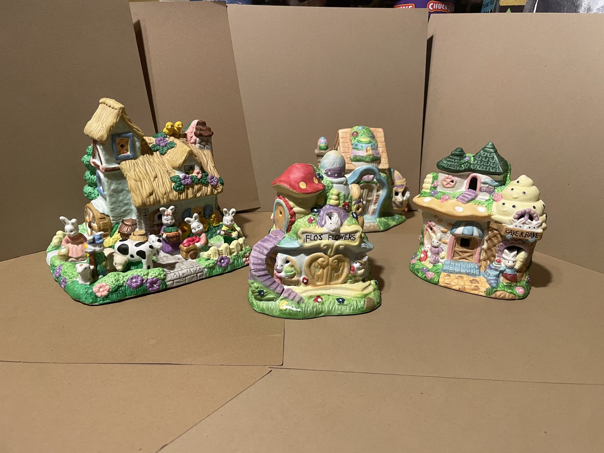 4 piece ceramic Easter village large pieces 4”-5” tall. Not in boxes