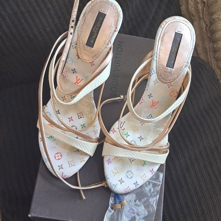 USED " AUTHENTIC LOUIS VUITTON HEELS WITH EXTRA HEEL PAD 50$