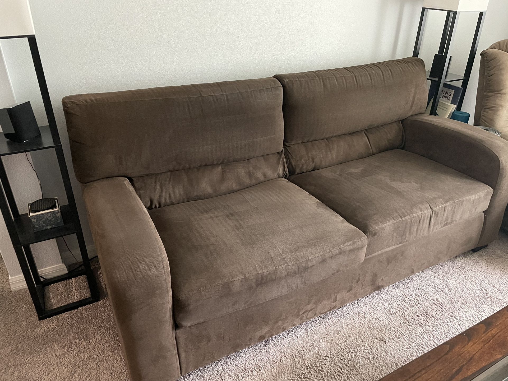Brown 82” sofa, non-sleeper. In overall good condition, cushions are a little flat. No stains or anything like that. 37”s deep. Available for pickup.