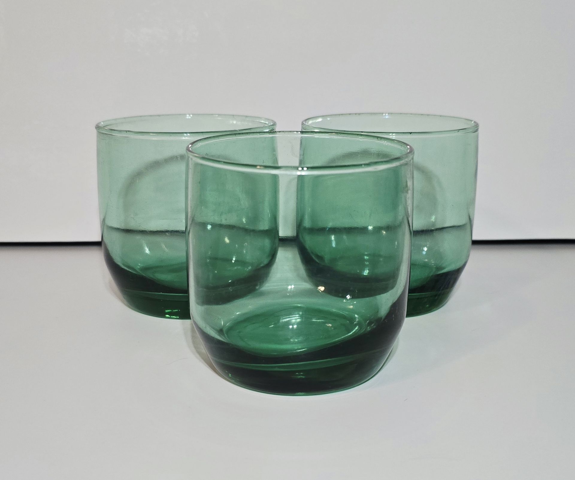 Add a bit of color and variety to your drinkware. A set of 3 vintage Anchor Hocking lowball rocks glasses in green. Each glass measures approximately 3" tall and 3" at the rim and weigh 6 oz. each. These glasses are pre-owned in good condition. There is cloudiness on the glasses along with minor scratches and abrasions. They come from a smoke-free home and do not come with any original packaging. Please see all of the photos, I'd be happy to send more if needed. Always shipped with care and insurance, usually within 1-3 business days. Feel free to reach out with any questions. The glassware set in the photos is the exact item you are purchasing. I also consider every offer, so don't hesitate to send them. Please check out the rest of my store, I have a little bit of everything for everyone. Thank you so much for looking!