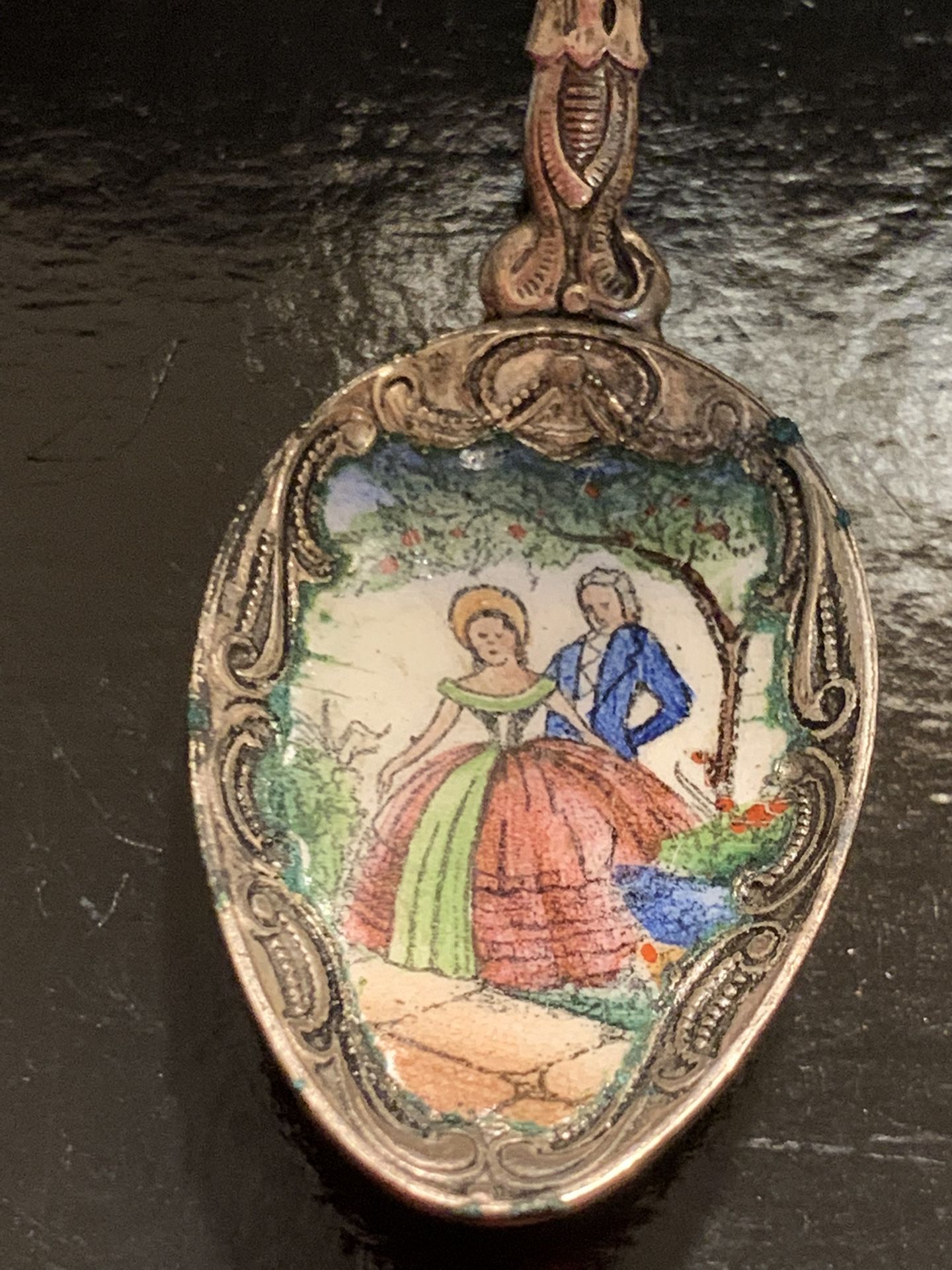 Silver plated. Pics show loss of plating on back of spoon. See pics for further description. Some enlarged to show details.