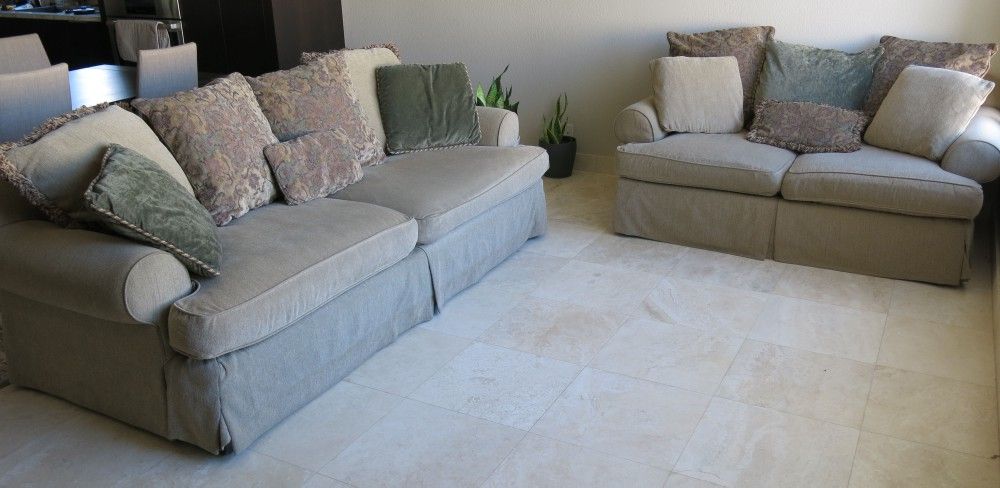Robb & Stucky 2-piece Designer Sofa Set ..... The sofa is one of the most comfortable to sit/sink in. It is in very good condition (no rips or tears) ..... Approx. dimensions: Sofa - 92" L x 40" D, Loveseat - 68" L x 40" D ..... Comes from a no pets, non-smoking home. Pick-up only. ***