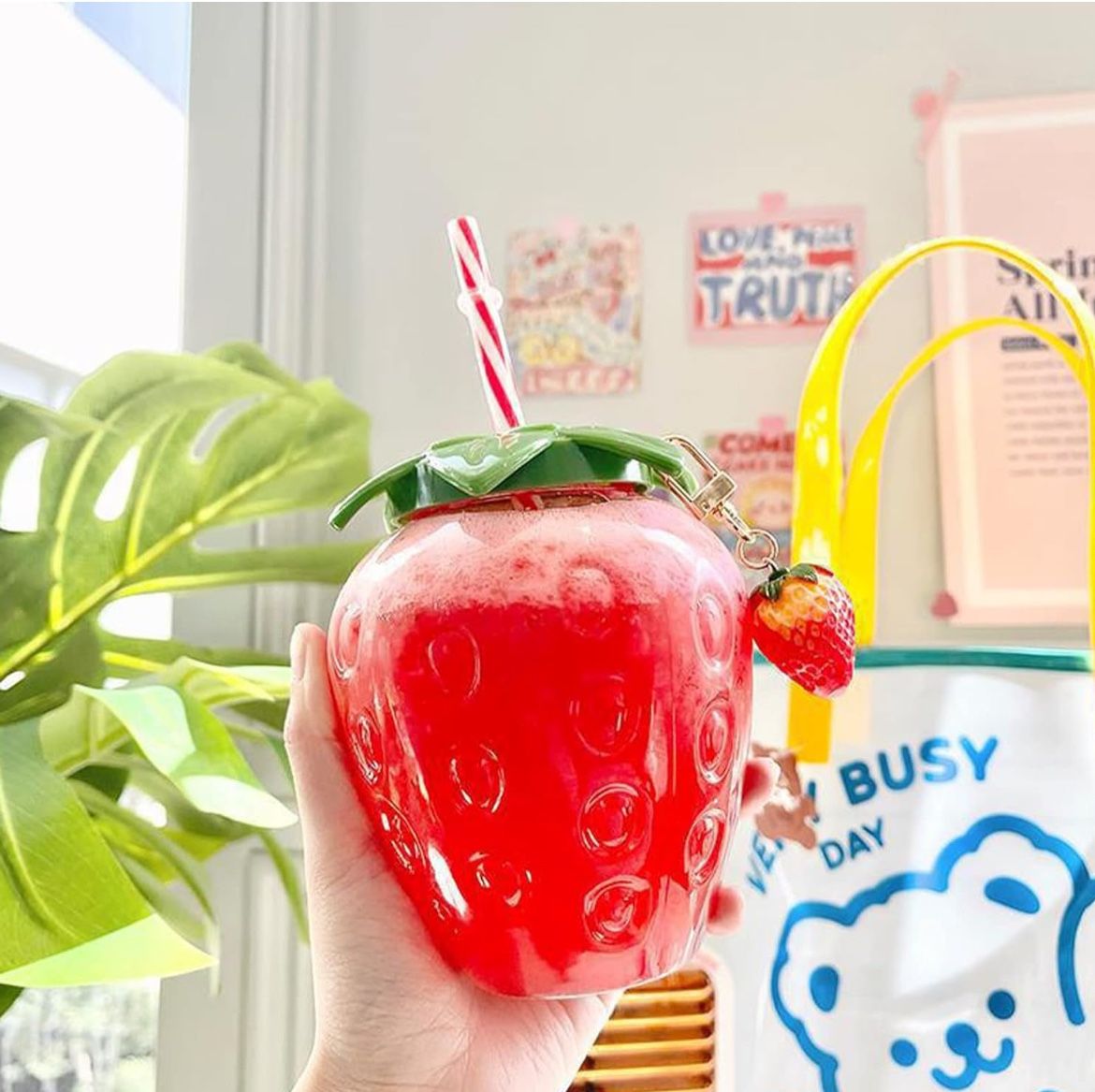 17 Oz Strawberry Cup with Straw and Strawberry Pendant Brand new; never used
