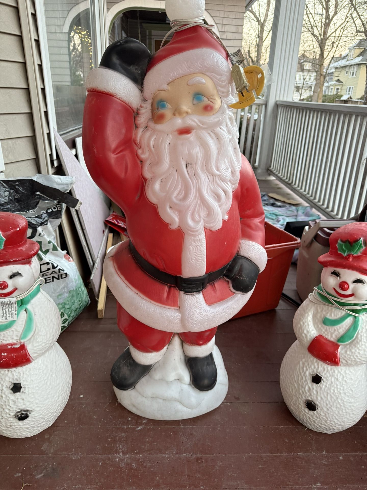 Vintage 1960’s Santa and Snowmen Light Up Blow Molds