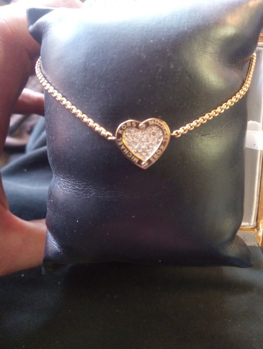 This is an authentic Michael Kors bracelet. It has a heart shaped pendant filled with real diamonds.still in box with price tag and all original inclusions . It was bought as a gift but never used. I payed $300 but it is priced to sell at $100 ... Nothing wrong with it