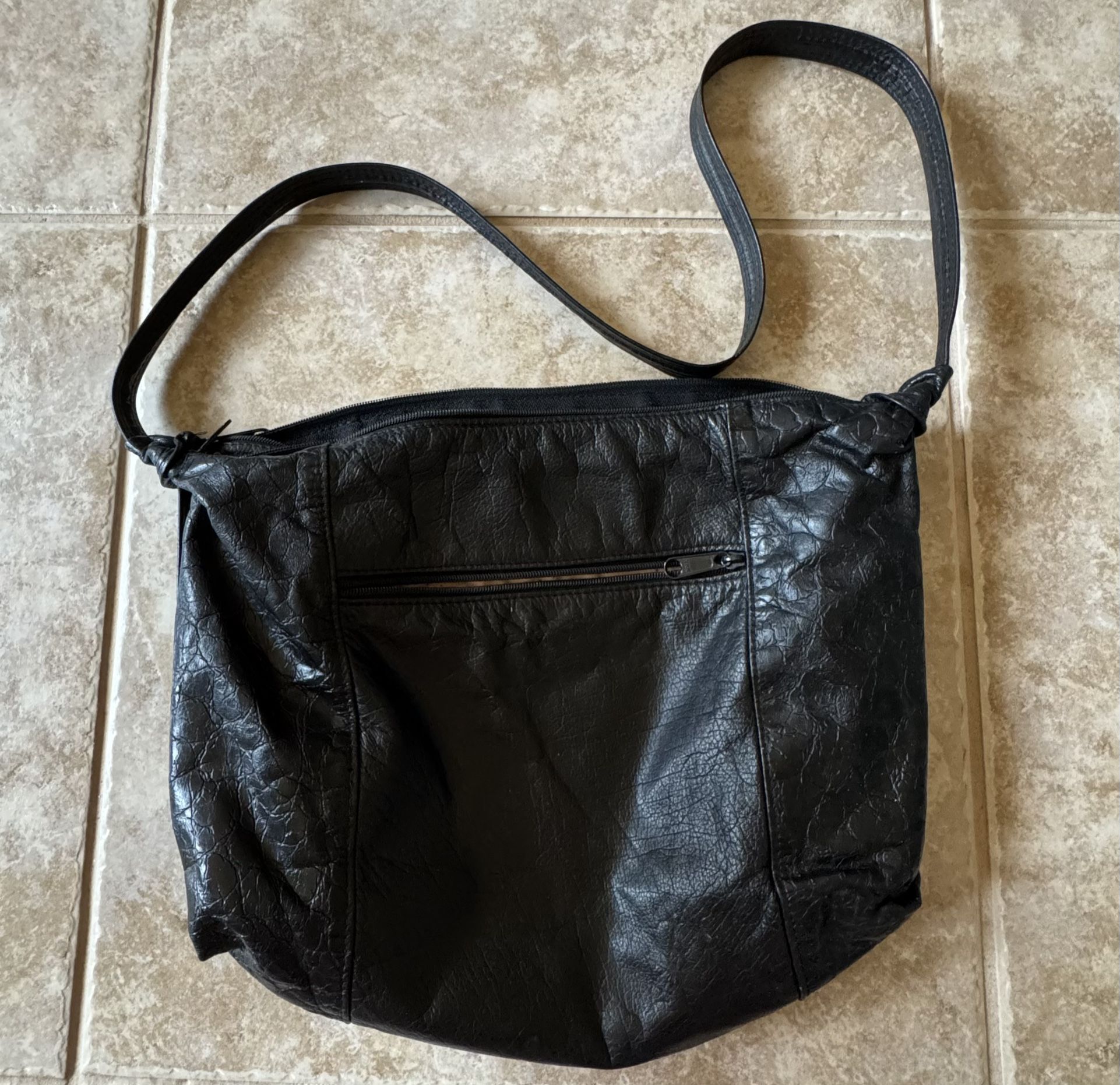 This soft, black, genuine leather shoulder bag is in great condition. Designed by Saereun New York. It has a tan suede lining. There are two main compartments inside, separated by a zipper. There is a zippered pocket in one of the compartments. The outside of the bag, on each side, there is a deep, zippered pocket. Straps are not adjustable. Dimensions: 12” height x 13” across 26” high including straps. Cash only. Public meetup is in S. Fort Myers at Walgreens on the NE corner of US 41 and College Parkway. Address is 12749 S. Cleveland Ave., Fort Myers, 33907. Available after 5pm on weekdays and usually all day on the weekends.