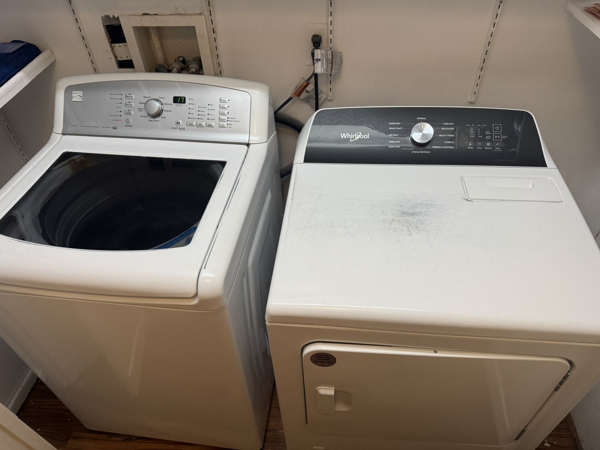 both of these work great they came with the house we just moved into nothing wrong and gas hose and water hoses etc come with. kenmore washer whirlpool dryer Make an offer. they already priced great. looking to move these Dryer is gas 150 for both