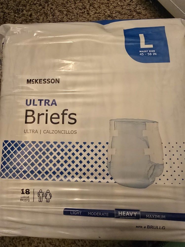 Incontinence briefs. Size L. I have 5 packs of 18 total. You can buy 1 or all 5.
