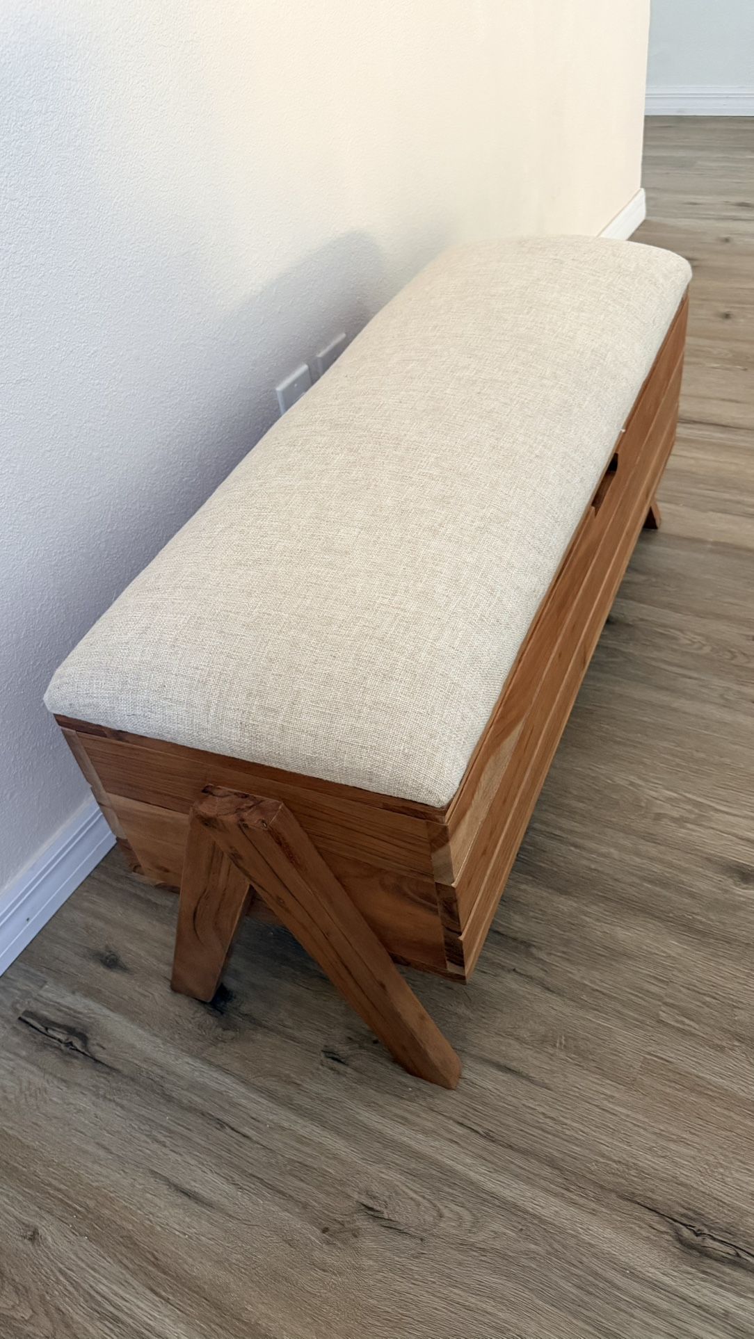 Small wood bench with storage area