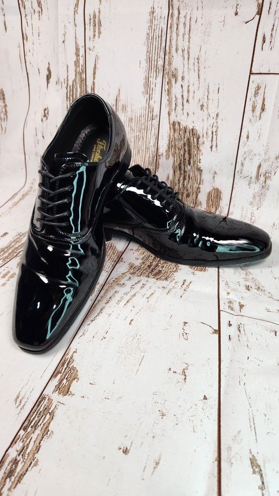 Step up your style with these elegant Florsheim black patent leather dress shoes. Designed for sophistication and comfort, they feature a high-gloss finish that adds a sleek, polished look perfect for formal occasions, weddings, parties, or special events. Brand: Florsheim Size: 10 (Men’s) Color: Black Material: Shiny patent leather upper Style: Classic lace-up oxford Condition: Excellent – clean and well maintained These timeless shoes pair perfectly with tuxedos or suits, offering both luxury and lasting quality. Ideal for anyone looking to make a sharp, classy impression.