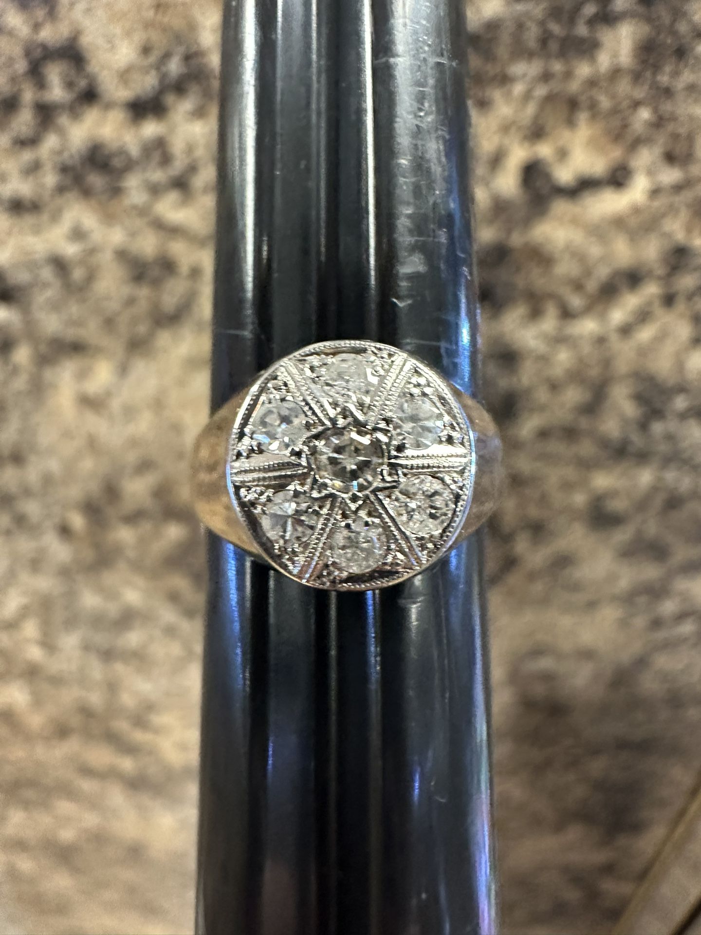 10k Art Deco Diamond Star Cluster Ring Size 8