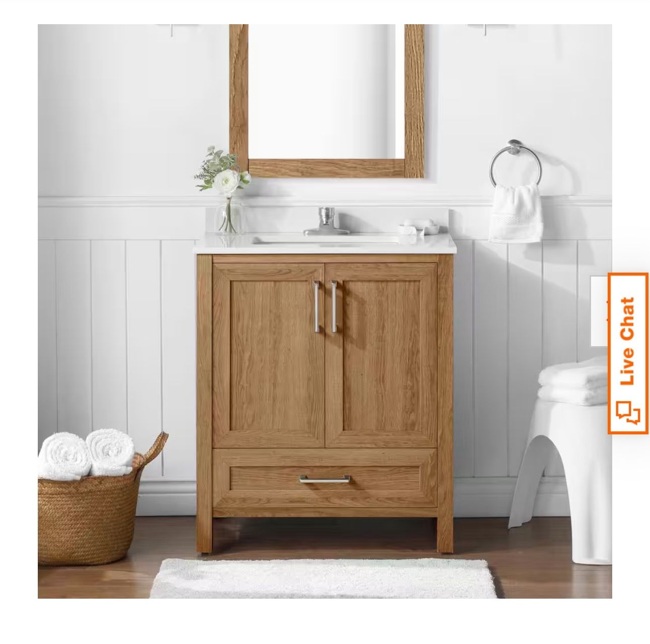 Moorside 30 in. Single Sink Sweet Maple Bath Vanity with White Engineered Stone Top (Assembled)