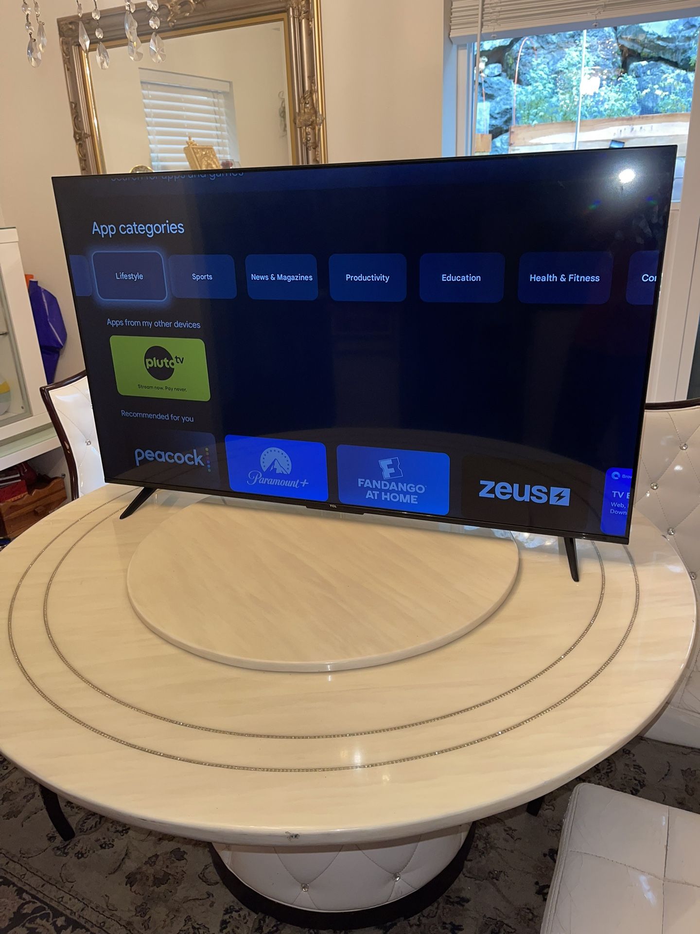TCL Tv works great Ni issue barely been used it’s factory reset ready for the new owner