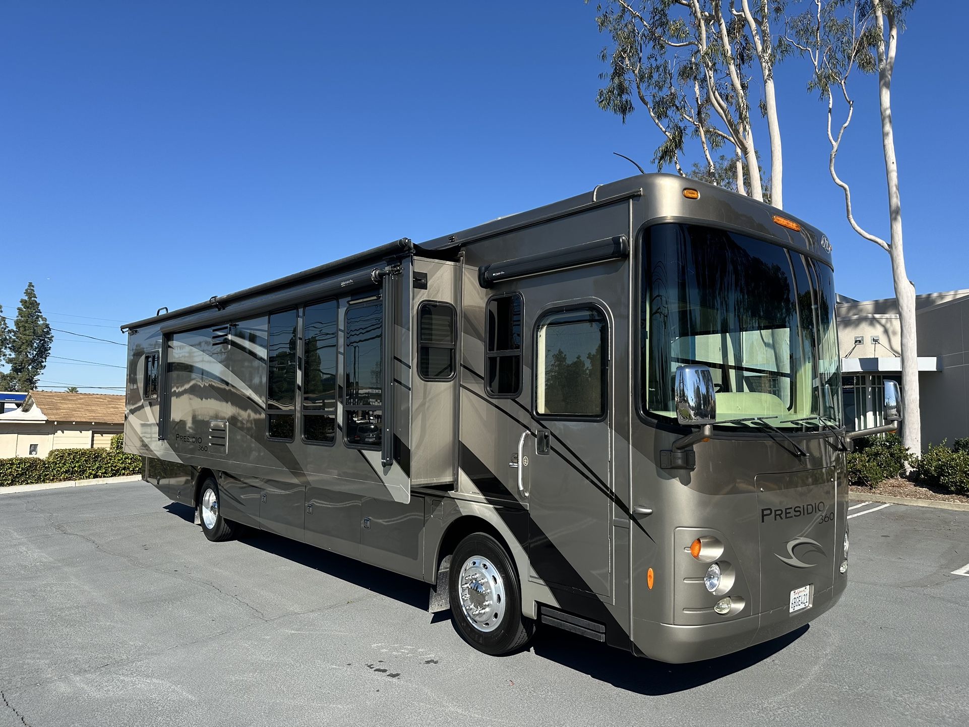 360 HP Cummings diesel pusher 33,000 miles Tree slide out to Roof 8000 Onan diesel generators. Auto auto levelers, microwave oven and stove, refrigerator new batteries, fully self-contained shower toilet washer dryer hook ups.