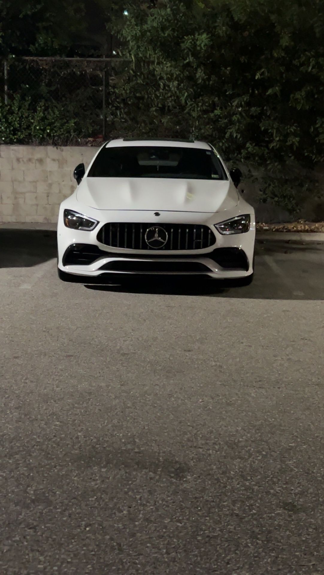 This is the Mercedes Benz Amg gt 53 I am renting out to people white exterior black interior mix or Luxury and Sport this is the perfect car catch peoples attention Starting 250 a day more days you rent better deal weekdays are 200,