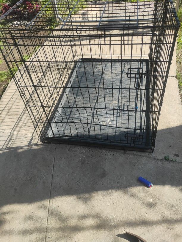 Heavy duty Big dog cage can hold a small medium or large dog has front door and side door with bottom tray asking $40 or best offer
