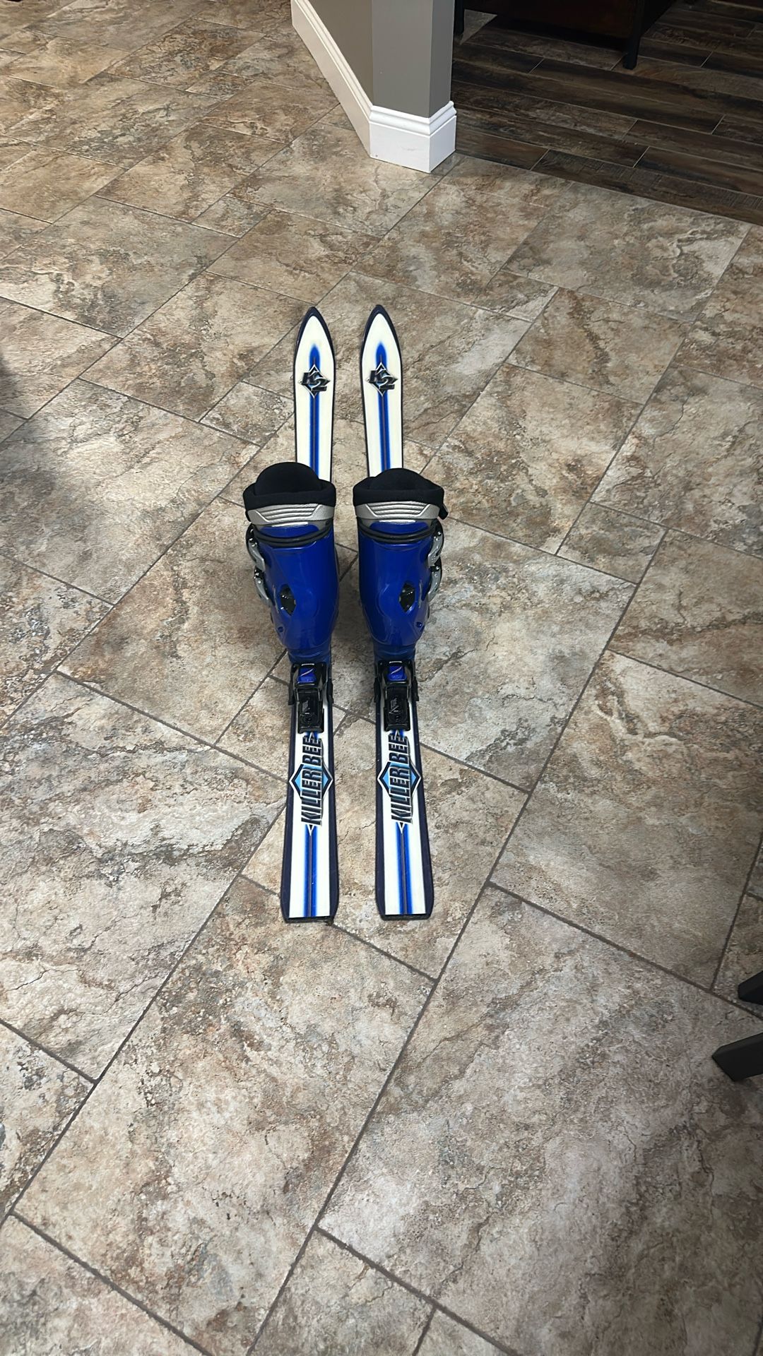 Boots size 280-285 (US men’s size 10 to 10.5 and women’s size 11 to 11.5) If you buy the set, you get the poles for free Skies are 5 ft long
