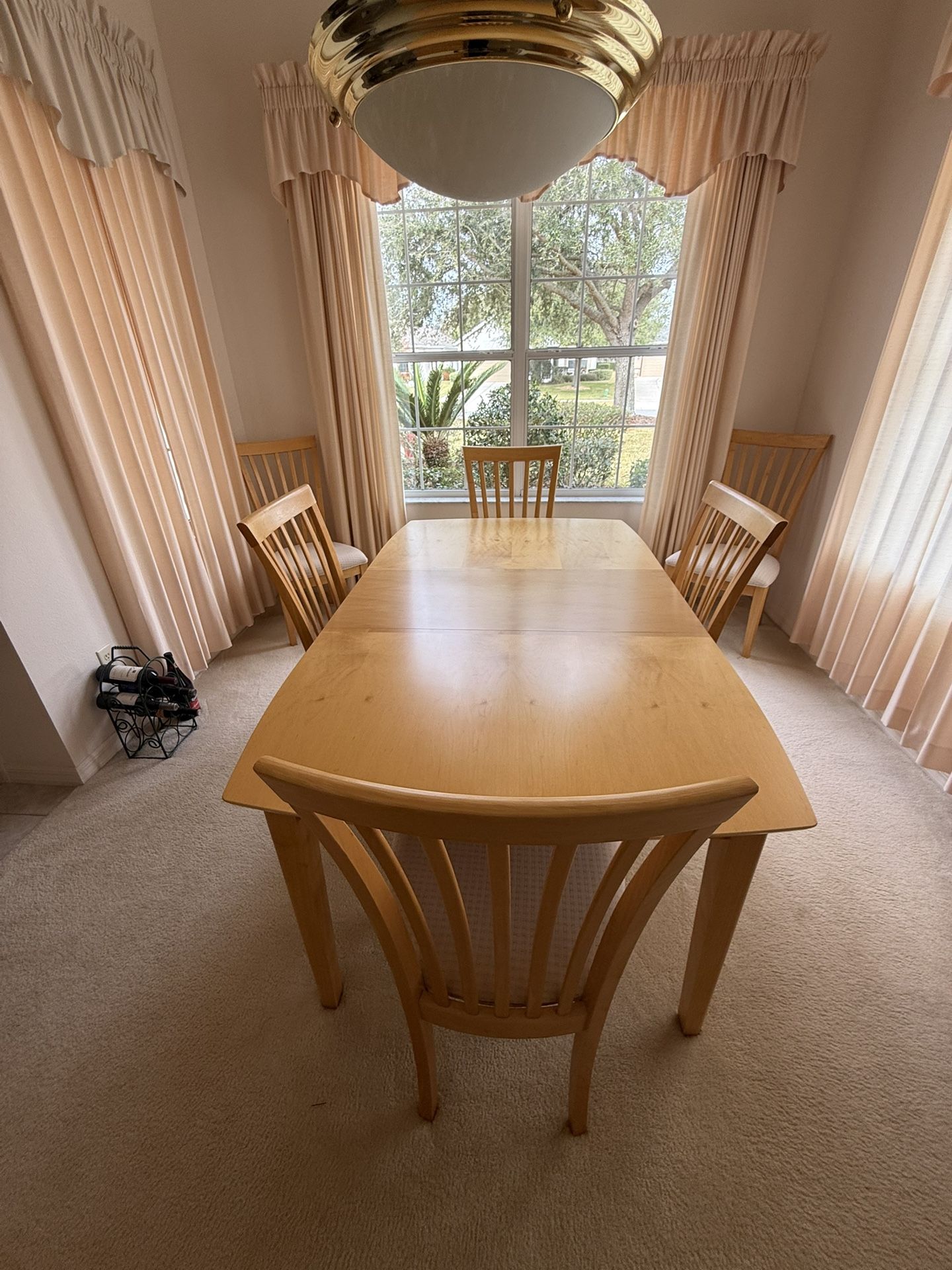 Re-Listing, buyer backed out Table: 54 L x 41 1/2 W (no Leaf) 6ft x 41 1/2 W (with Leaf) Leaf - included 6 Fabric Chairs 2! Buffets - 4 ft L x 17 3/8 W, 1 shelf in each Rarely used, Non-Smoker, No Pets Excellent Condition, serious inquiries only! - Cash only!