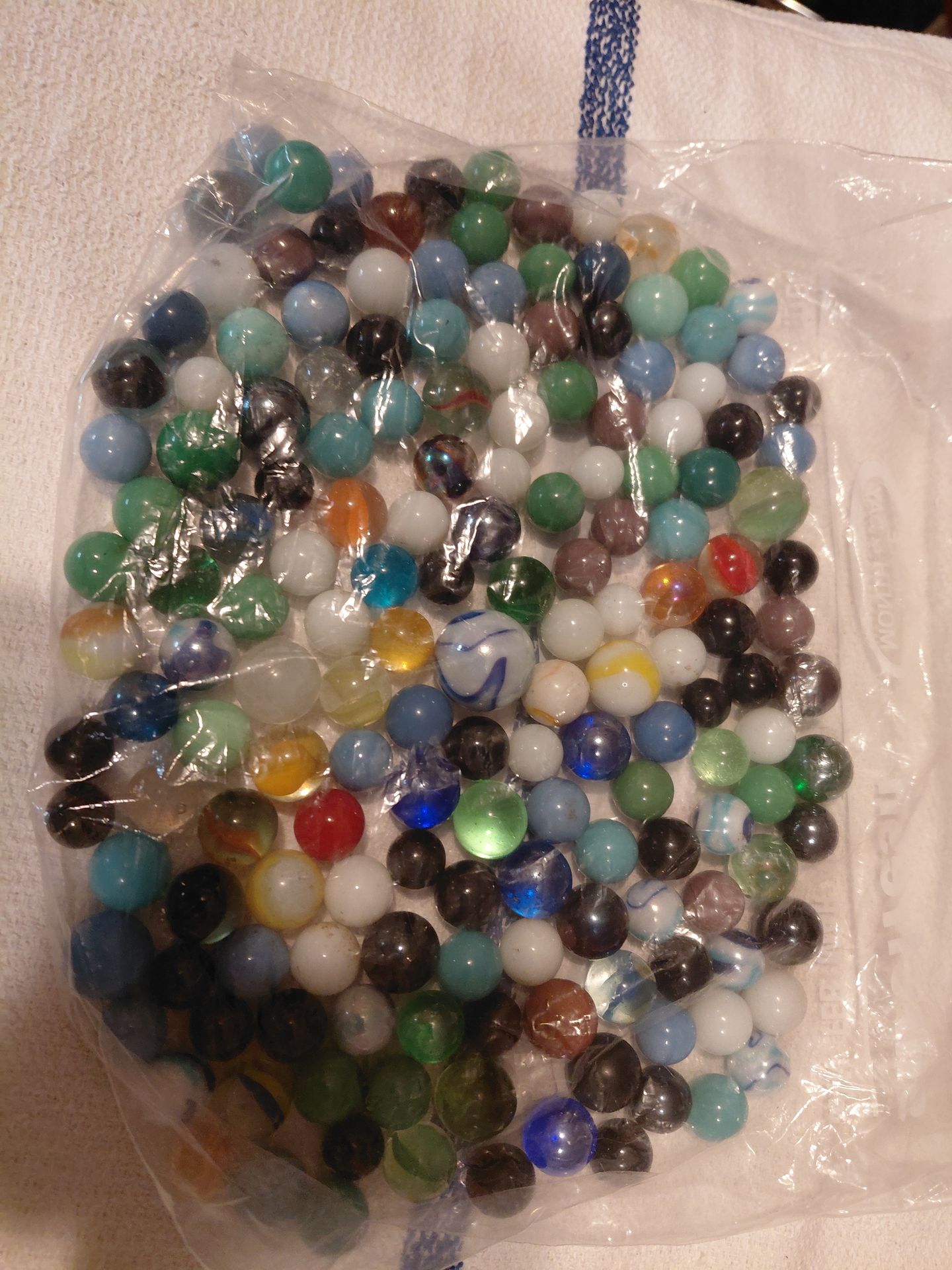 Close to 600 of them some blue and brown clay marbles hand made about 75 of each and all the ones you see in the pictures and some if you send me a number I can send better pictures thanks