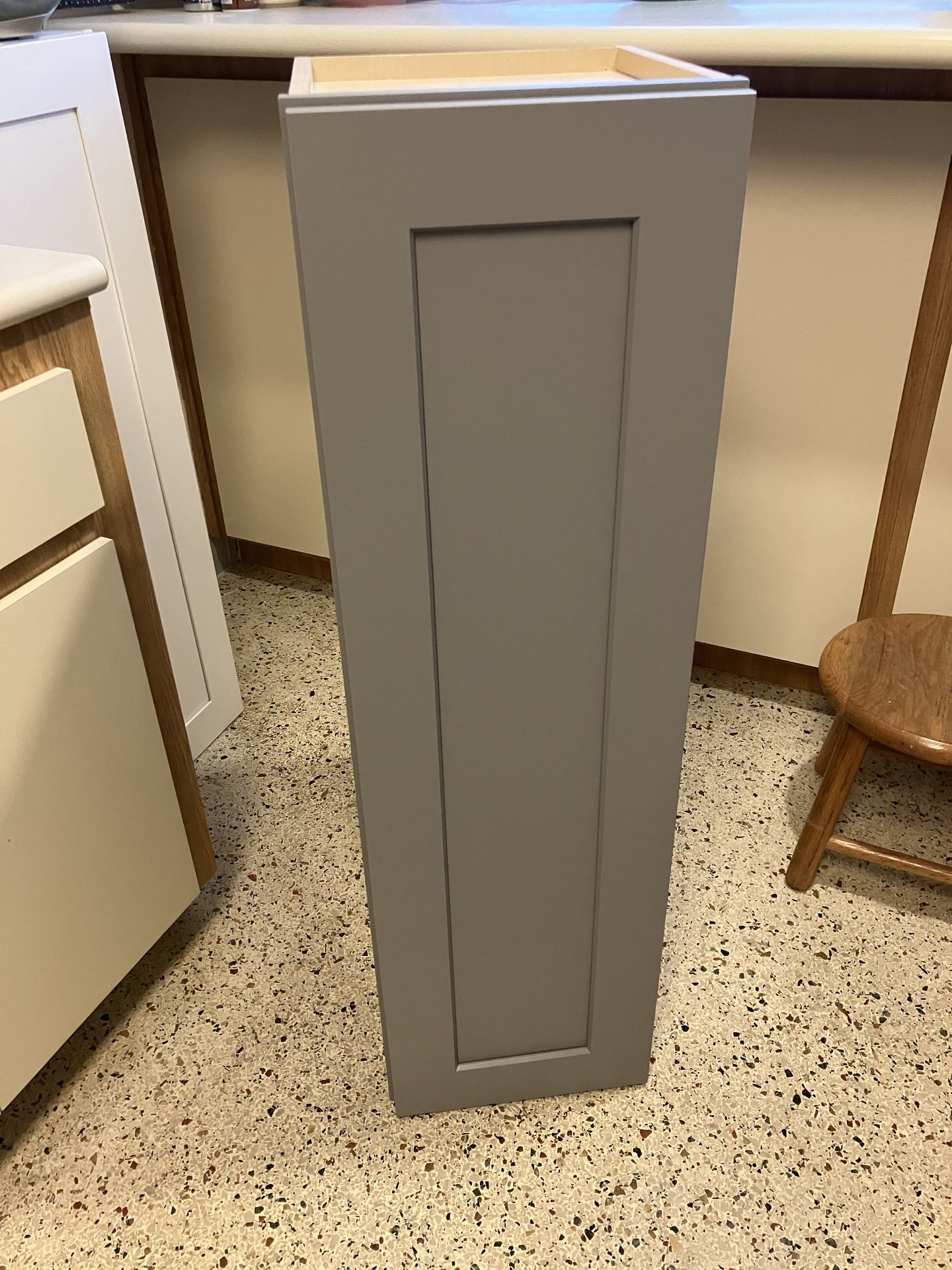 A quality made single upper kitchen cabinet, including shelves, in gray color. Measurements are 40”tall by 12”deep by 12” wide. See pics for details. $95 Cash only upon pick up. If the item is listed, it’s available. Please be sure to take a look at my other items for sale. Thank you.