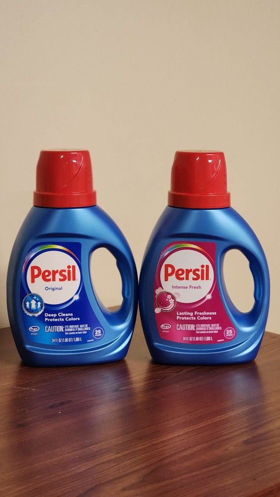 Experience a deep, powerful clean with Persil Liquid Laundry Detergent—trusted for its advanced stain-fighting performance. Persil works hard on tough stains while leaving your clothes looking bright and smelling fresh. Compared to typical retail pricing of $5.44 (Walmart), you will be getting a deal for only $5 each. Scents Available: Original (34oz) Intense Fresh (34oz) Please feel free to reach out on any inquires on this listing or others. Pickup Only