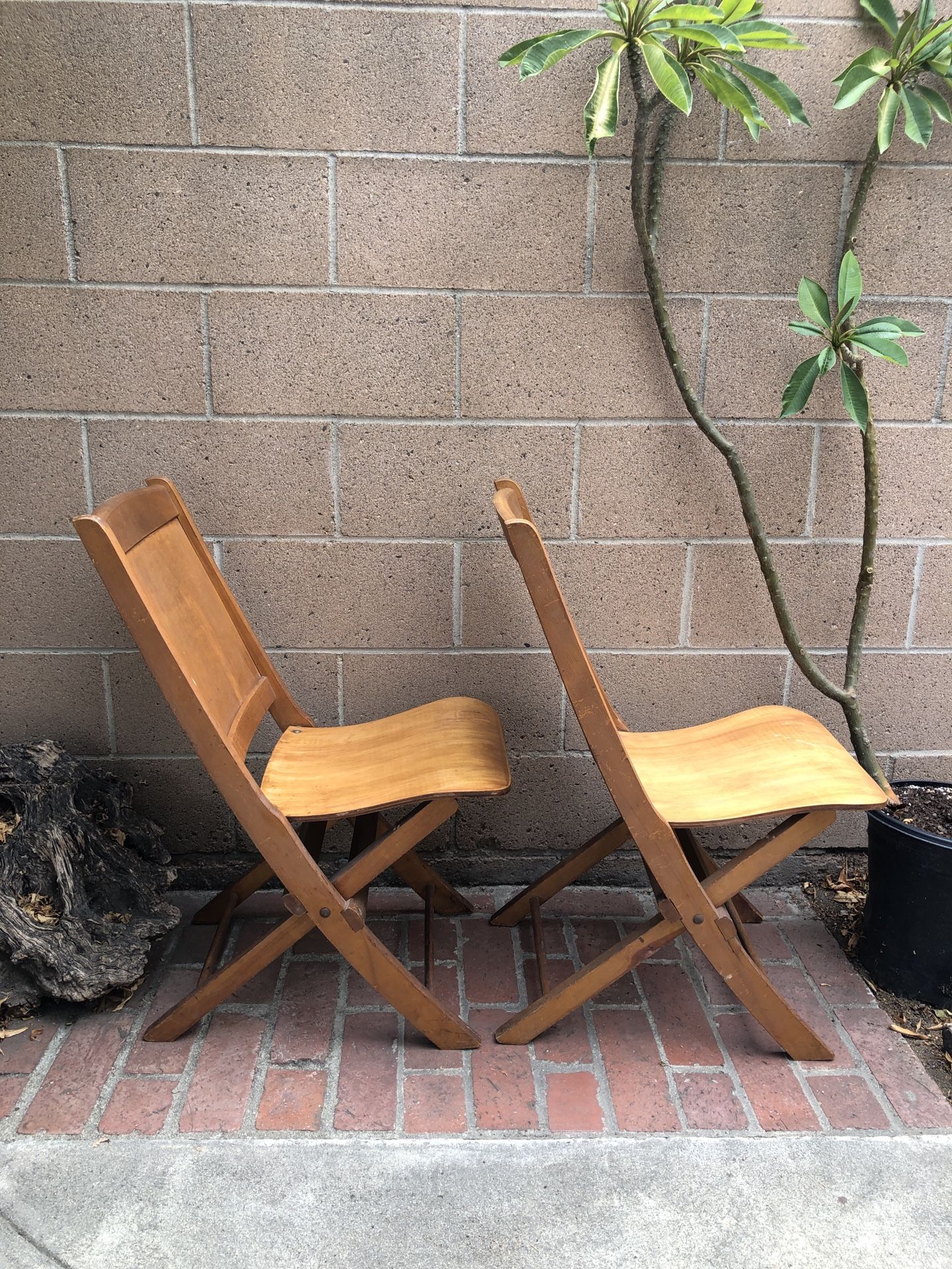 Pair Vintage Wooden Folding Chairs Los Angeles Miller & Co