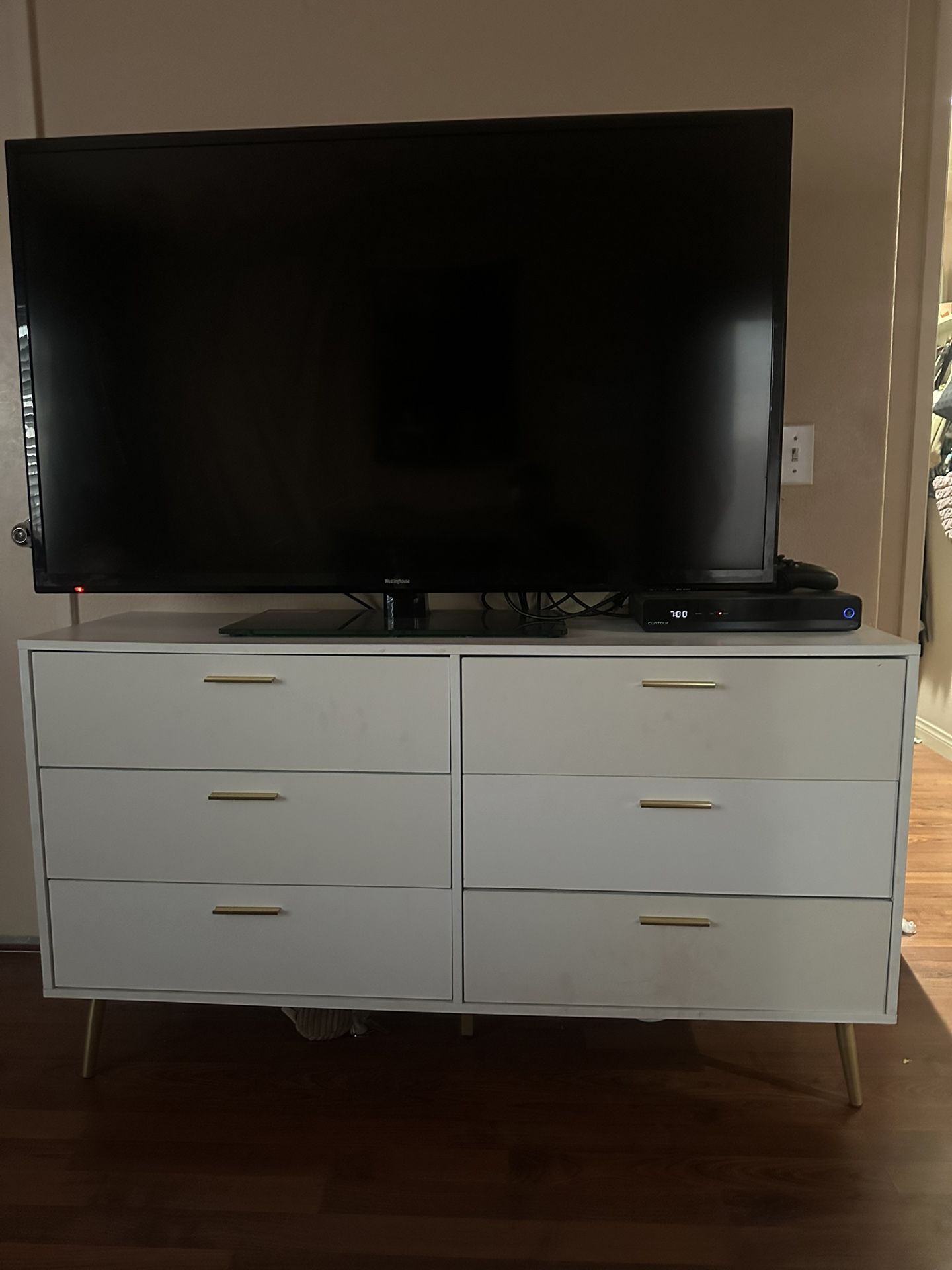*TV NOT FOR SALE* Moving need gone 4/1 Selling 2 white dressers for $80 Or each $40.
