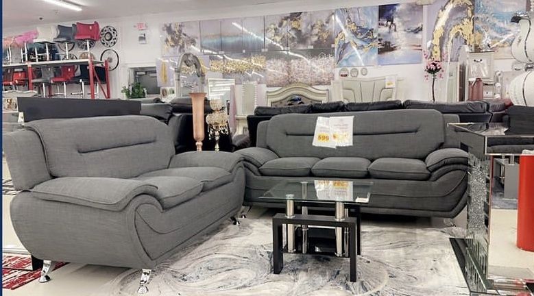 Fabric Grey Sofa And Loveseat On Special! Same Day Delivery!