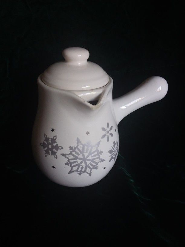 MODERN WHITE TEAPOT WITH LID AND SNOW FLAKE DESIGN CERAMIC POTTERY