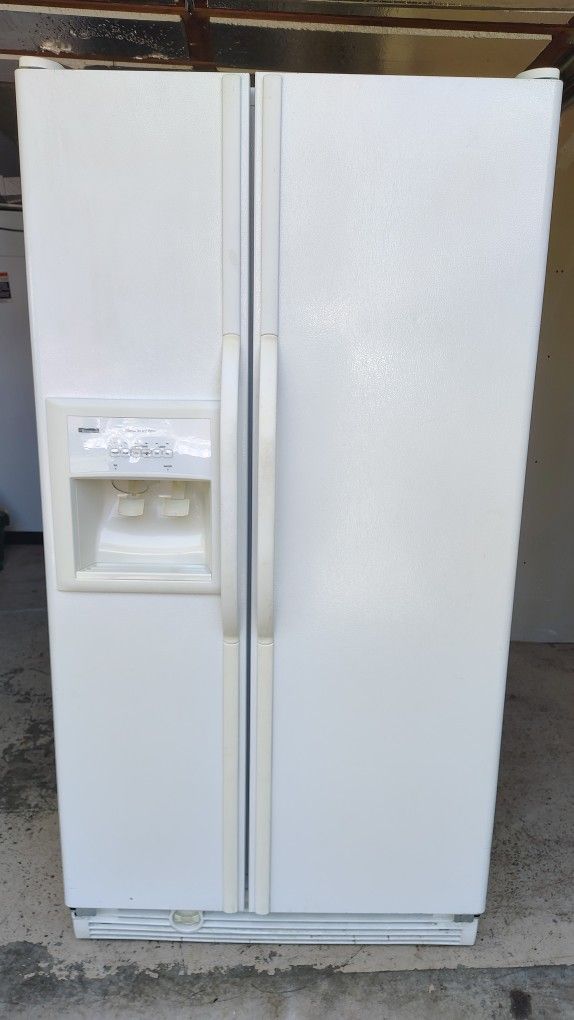 Excellent working & clean white Kenmore side by side refrigerator & freezer that stands 69" tall, 36" wide, & 30" deep. Would make a great garage or spare fridge. I can bring it to you for no extra charge.