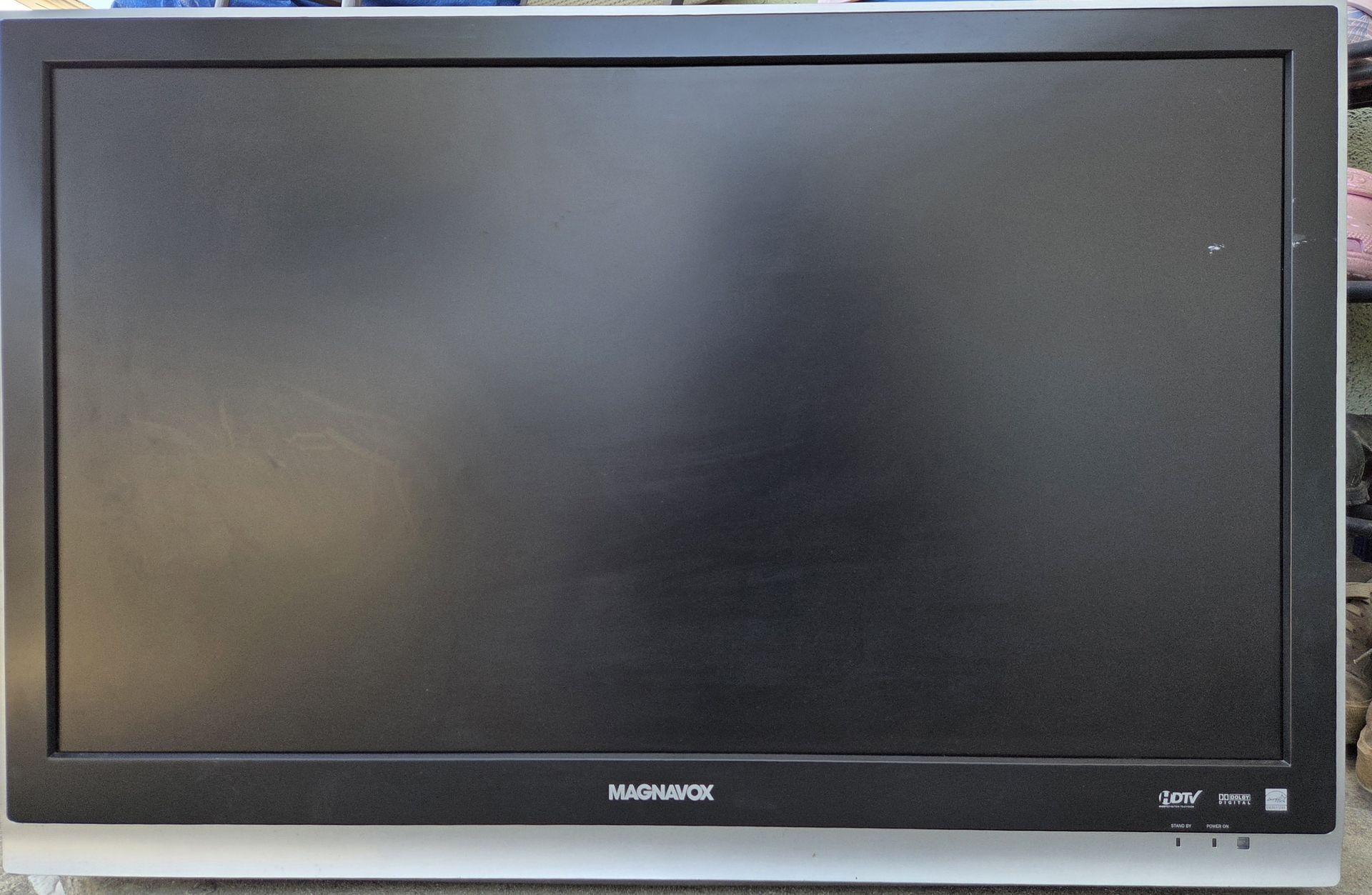 32 Inch T V. Missing base, but it can stand. Also no remote control. Priced low. For any one that may need it.