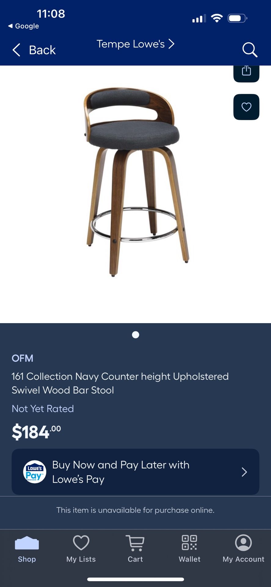 Navy Counter height Upholstered Swivel Wood Bar Stool