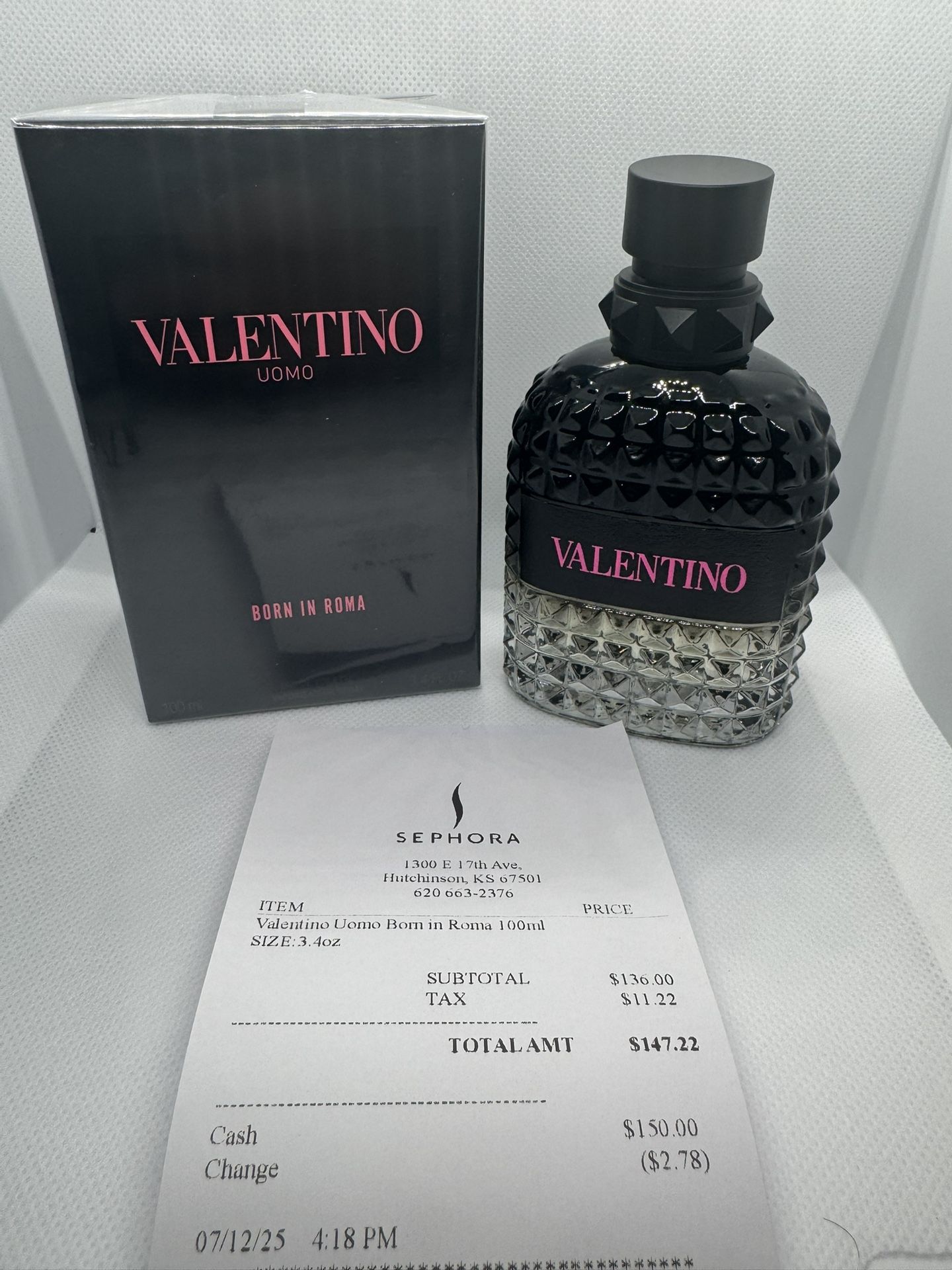 This is an incredibly popular, modern men's fragrance. It's an addictive, woody-aromatic scent with notes of Salt, Ginger, Sage, and Vetiver—perfect for compliments and versatile enough for any season, day or night. Plus, the studded bottle is a statement piece! Save money on a fantastic designer scent! Serious buyers only. #Valentino #BornInRoma #ValentinoUomo #DesignerFragrance #Cologne #MensCologne #FragranceForSale #Sephora