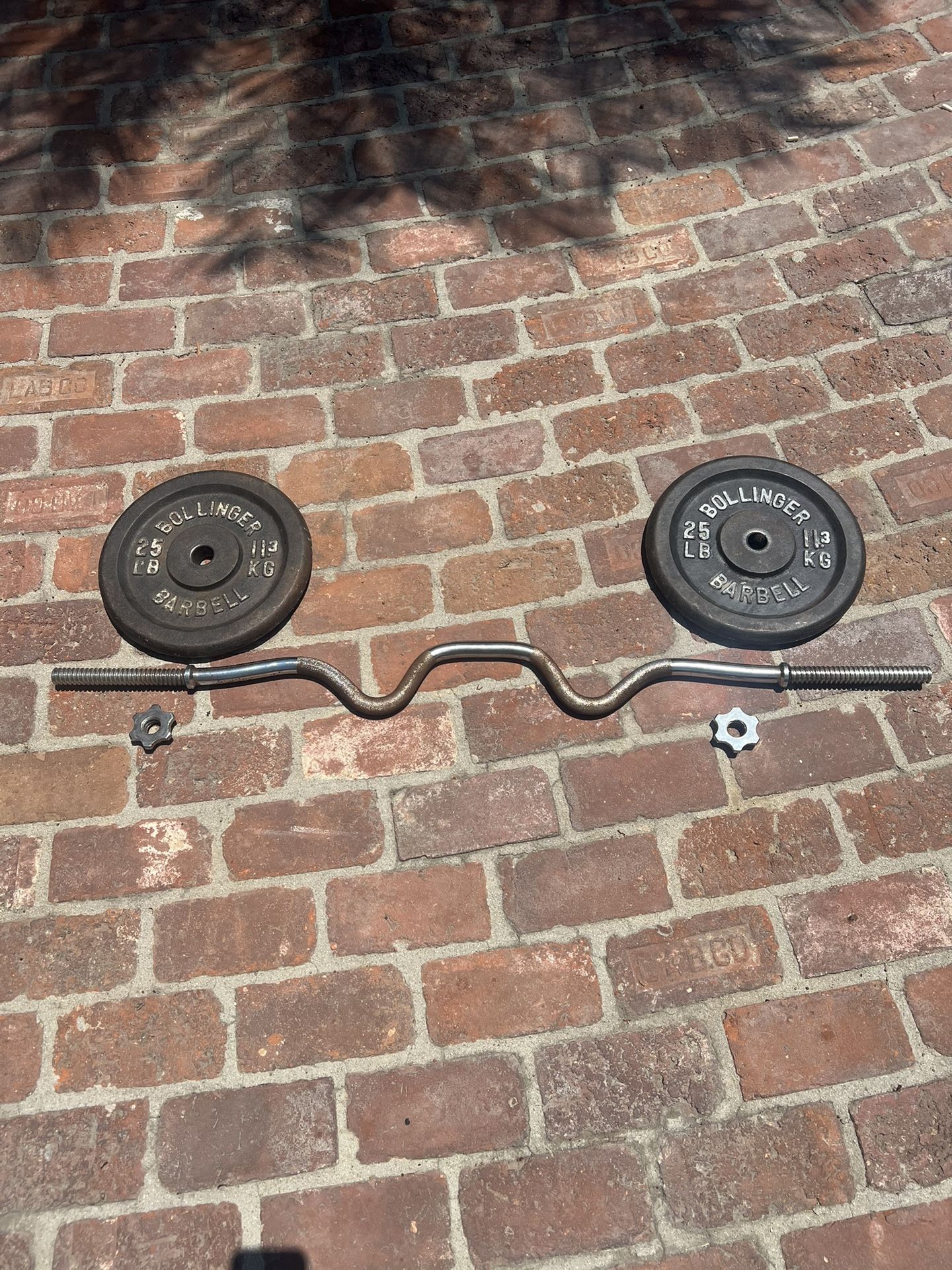 Olympic arm curl bar (10 lbs) - $10 Arm curl bar 2 (25lbs) plates - $50 Bundle: $55