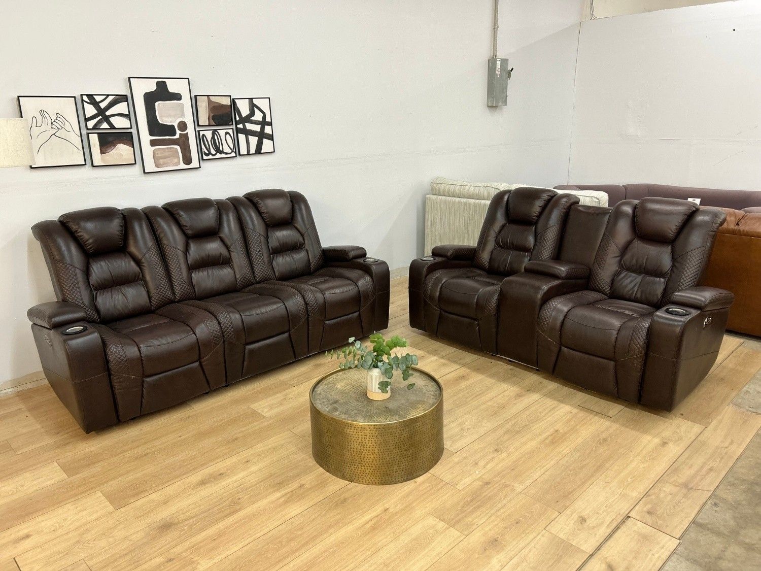 We can deliver and carry it in for $99 if you are within 35 miles of Pacific. Feel free to check it out in person before purchasing! Some spots & scratches. All recliners work. Features cupholders, USB ports, and LEDs. Delivery is $150 as these are HEAVY! Come check us out in Pacific