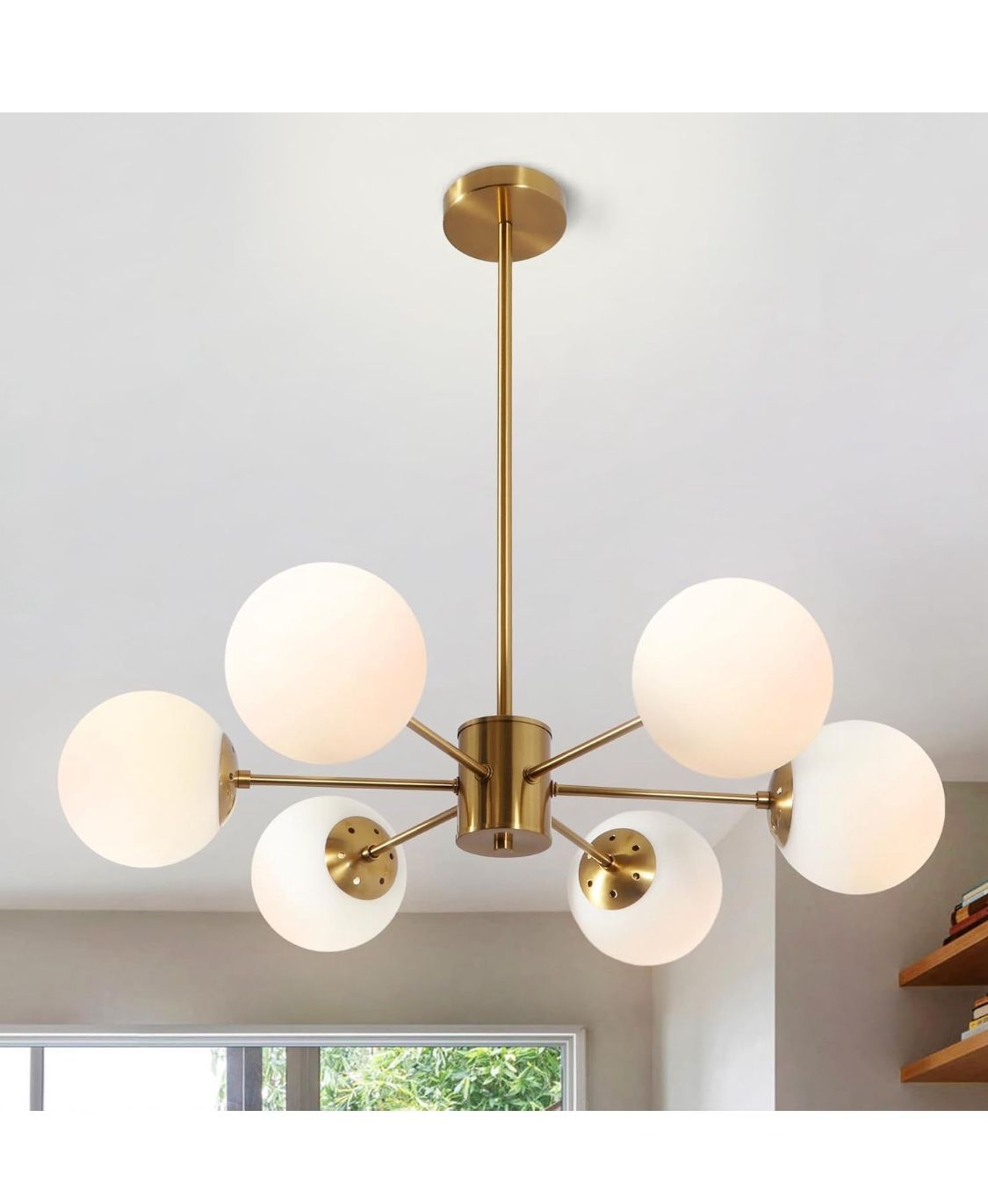 6-Lights Chandeliers - Betkas Glass globe chandelier with barss metal and 6 milk globe contribute to the modern sputnik chandelier.Superb craftsmanship,decor your places! Widely Classic Decoration - The Glass Gold Chandelier light fixture brighten up your places with a modern look.Perfect for kitchen island, dining room, living room, bedroom, kitchen, farmhouse, foyers, hallway, coffee bar, lobby, restaurant ect.