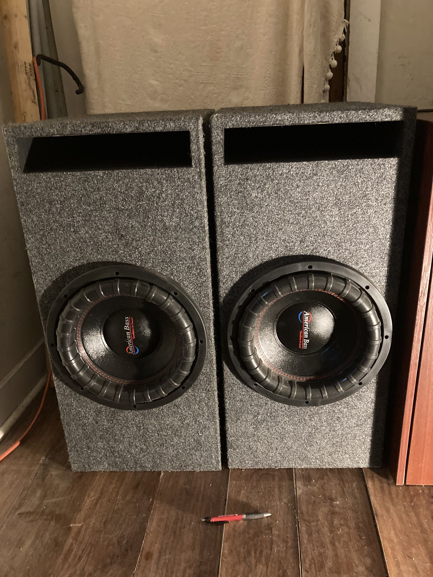 Make offers! The I have two xfl- 1222 peak 1000w rms that’s (4000w peak power together)in custom stage two enclosures from sonics out of Miami. Warning: Have not been broken in yet, take it easy till they gain their flexibility! I will sell together or separately. They are wired to be run together at 1 ohm however you can easily switch to 2 ohm if you just want one sub and box. I do not wish to separate either of the subs from their enclosures however. Also have power sources (amps) if needed. I have posted a picture of the amps (in fan cooled enclosure) that run this setup (they do not come with but we maybe able to work something out). These amps can also be split up to power one sub. These are large. Most car trunks will only be able to fit 1. 600 obo
