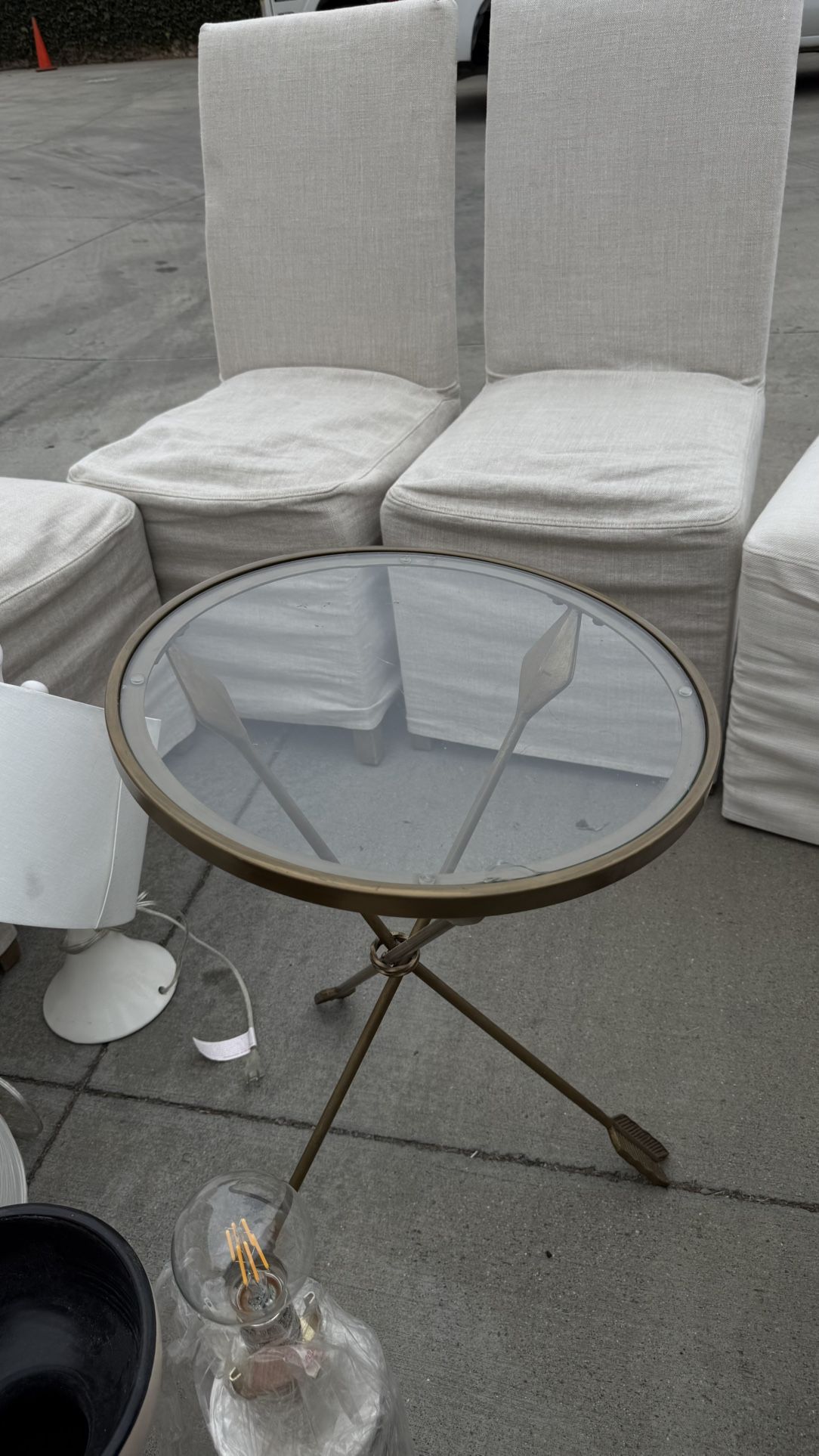 Three arrow glass top table, great looking table perfect for your center piece or just a coffee table. I have it really low in price due to it has damaged a little piece from the glass but aside from that it’s still in good condition.