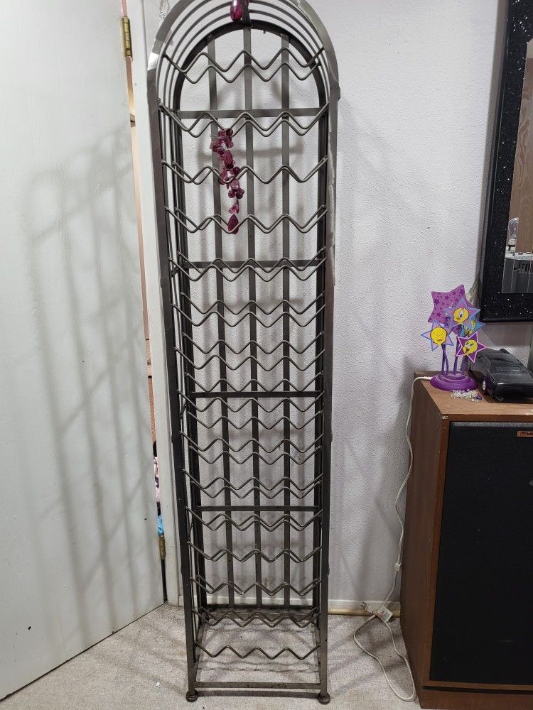 Metal wine rack holds 60 bottles approximately 6 feet tall